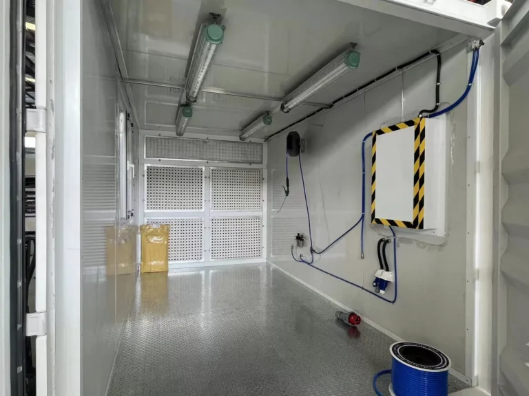 Son grand avantage est sa mobilité : elle peut être transportée par camion, positionnée sur un chantier, dans une zone industrielle, une base militaire, un port, ou tout site nécessitant une solution de peinture temporaire ou délocalisée. Aucun bâtiment n’est à construire ; le conteneur se pose, se branche et peut être utilisé rapidement.